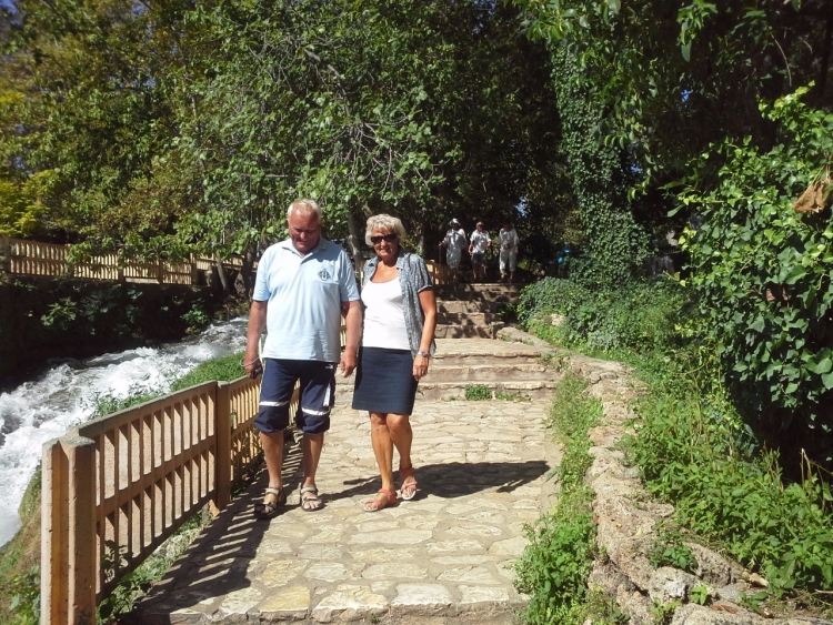 Затем мы покидаем Анталию и отправляемся к водопаду Дюден. Очень пышное и красивое место с водопадом около 20 метров. Также можно зайти за водопад, чтобы посмотреть.